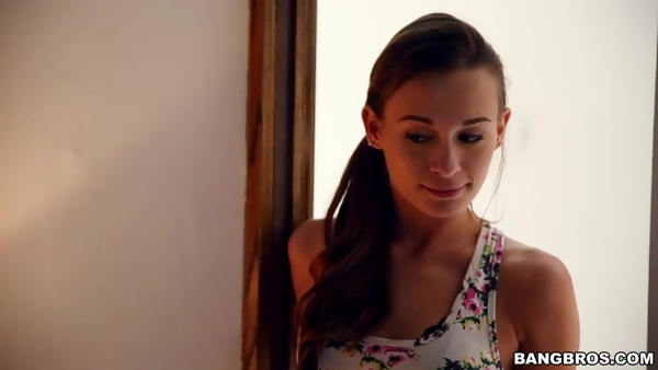 Teen brunette babe Kiera Winters showing her panties and pulling them to side